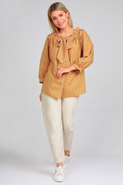 Демисезонная блуза с ремнем и бантовым завязыванием Таир-Гранд 62167 горчица