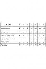 Блузка оригинального дизайна имеет потрясающий фасон, который подходит для дам с любыми особенностями фигуры. Своим оригинальным кроем она отличается от простых блузок. Блуза свободного силуэта, приталивается с помощью пояса. Застежка центральная, на фигурную планку. В верхней части планки завязывается бант. Горловина круглая, на обтачке, верхний край которой отделан рюшей. Рукав длиной 3/4 «реглан», в верхней части оката присборен, что позволяет скрыть полноту рук, особенно в верхней части. Внимание: Цветопередача на фото может искажаться от реального цвета ткани и на различных гаджетах выглядеть по-разному. М 62167 48 50 52 54 56 58 60 Длинна спинки, (см) 62 62 62 62 63,5 63,5 63,5 Длина рукава, (см) 54 54 54 54 55 55 55 Ширина под проймой, (см) ПОГ 59 61 63 65 67 69 71 Ширина по бедрам, (см) ПОБ 55 57 59 61 63 65 67 Ширина рукава под 47 49 51 52 52 54 56 проймой (обхват) (см) Длина полочки 60 60 60 60 62,5 62,5 62,5