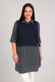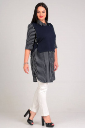 Жилет и туника удлиненная из вискозы и текстиля Таир-Гранд 62253 т.синий