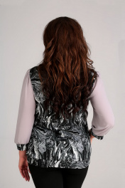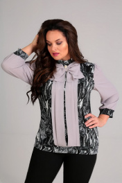 Демисезонная блуза из трикотажа с поясом и бантами Таир-Гранд 62295 чб+ сер.шифон