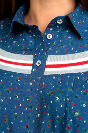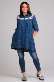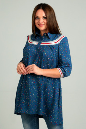 Блуза А-силуэта в полоску с карманами и рукавом 3/4 Таир-Гранд 62312-1 синий