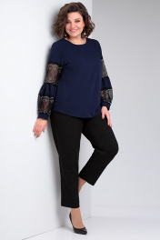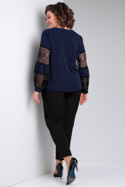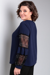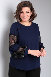 Блуза свободного силуэта с кружевом для повседневного образа Таир-Гранд 62370 темно-синий