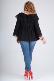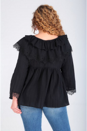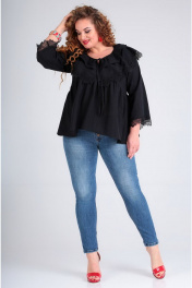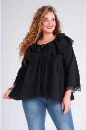 Кружевная свободная блуза с расклешенными рукавами Таир-Гранд 62380 черный