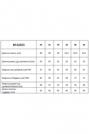 Нарядная элегантная блузка, прямого силуэта позволяет быть красивой и стильной на торжественных событиях. Горловина, углубленная, круглая обработана обтачкой. Рукав – реглан, по низу расклешен и присборен на эластичную тесьму. По середине рукава находится декоративный люверс , через который протянут бант из атласной ленты, тем самым регулируя длину рукава и служит украшением в изделии. Чтобы сохранит внешний вид блузки рекомендуется ручная стирка при температуре не превышающей 40 С без хлорсодержащих отбеливателей. Внимание: Цветопередача на фото может искажаться от реального цвета ткани и на различных гаджетах выглядеть по-разному. 50 52 54 56 58 60 Длинна спинки, (см) 60 60 60 62,5 62,5 62,5 Длина рукава, ( от горловины ),(см) 63 63 63 63 63 63 Ширина под проймой, (см) ПОГ 57 59 61 63 65 67 Ширина по бедрам, (см) ПОБ 63 65 67 69 71 73 Ширина рукава под 49 51 53 54 56 58 проймой (обхват) (см) Длина полочки 62 62 62 65 65 65 ( центр ), (см)