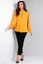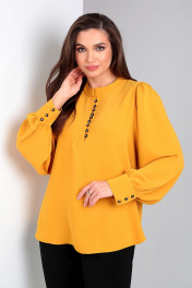 Демисезонная блуза с воротником-стойкой и присборенным рукавом Таир-Гранд 62423 горчица