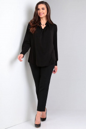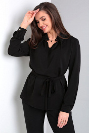 Элегантная демисезонная блуза с поясом и украшением Таир-Гранд 62425 черный