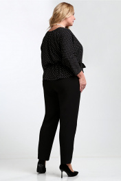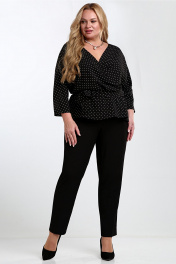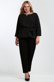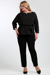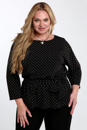 Черная на каждый день нарядная блузка с поясом Таир-Гранд 62426 горох