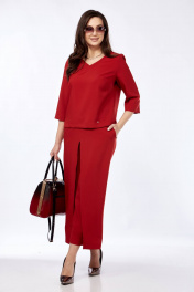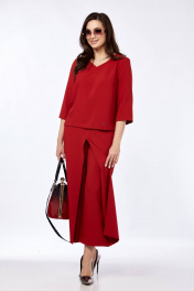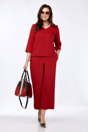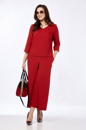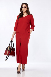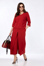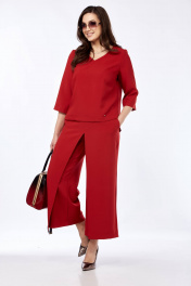 Комплект из брюк-кюлотов и блузона с разрезами и имитацией юбки Taita plus 2434 т.красный
