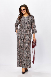Блуза, брюки Taita plus 2615/2 леопард_черный+ клевер