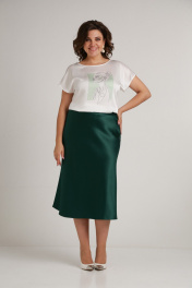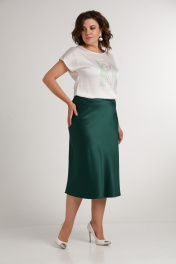 Зеленая юбка из сатина по косой с молнией сбоку Takka Plus 24-236