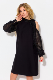 Элегантное платье-трапеция с бантом на плече Talia fashion 417 черный