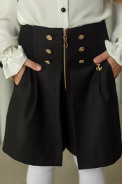 Стильные и оригинальные юбка-шорты для девочек темно-синего цвета! Отличный вариант для прогулок и активного отдыха, посещения школы и колледжа. Модель застегивается спереди на молнию, по бокам которой имеются декоративные пуговицы. Юбка на широком поясе, трикотажные вставки обеспечивают идеальную посадку по фигуре, не сковывают движения! Шорты школьные превосходно подойдут на худеньких девочек! Справа изделие украшает очаровательная подвеска в виде якоря. По бокам расположены карманы. Данная модель сшита из качественной, плотной трикотажной ткани, которая устойчива к длительной носке и деформации. Высокая линия талии позволяет визуально удлинить длину ног. Данную юбку для девочки синюю можно использовать в ежедневном школьном гардеробе. Также шорты школьные для девочки Тамми идеально подойдут для танцев, косплеев под ёлку в игровом или аниме образе. Вискоза в составе обеспечивает воздухопроницаемость; благодаря полиэстеру изделие хорошо держит форму, износостойкое; спандекс обеспечивает комфорт движений и отвечает за отличную посадку по фигуре. Изделия белорусского бренда TAMMI - для тех, кто выбирает лучшее себе, своим друзьям, детям!