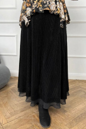 Юбка женская нарядная от TAMMI - идеальный выбор для создания стильного и элегантного образа. Модель прямой силуэта миди длины, выполненная из дышащего материала с добавлением вискозы, обеспечит комфорт в течение всего дня. Юбка на резинке, что гарантирует удобную посадку и свободу движений. Декоративный шифон и ткань с блестками добавляют образу праздничный шик, делая юбку TAMMI подходящей для особых случаев.