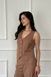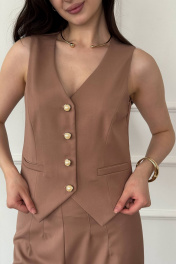 Жилетка женская костюмная – это элегантная и стильная безрукавка, которая станет прекрасным дополнением к вашему образу как в офисе, так и на праздничном мероприятии. Этот классический жилет идеально подходит как для формальных случаев, так и для создания модного и стильного образа на каждый день. Эта короткая жилетка представлена в различных размерах, включая большие размеры для девушек и подростков. Она легкая и удобная, что делает ее отличным выбором для осеннего сезона. Сочетание класcического кроя и модных деталей делает эту жилетку универсальной – она подойдет как для офисного образа, так и для вечернего наряда.Жилетка выполнена из качественных материалов, что обеспечивает комфорт при ношении. Украшена стильными пуговицами, добавляющими изысканности этому предмету одежды. Благодаря своему дизайну и цветовой гамме, эта жилетка станет неотъемлемой частью вашего гардероба на осень, подчеркивая ваш индивидуальный стиль и придавая образу завершенность.Она станет отличным выбором как для повседневного образа, так и для особых случаев, будь то выпускной вечер или официальное мероприятие.