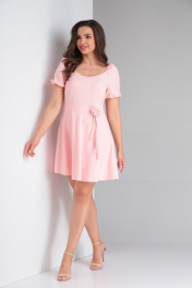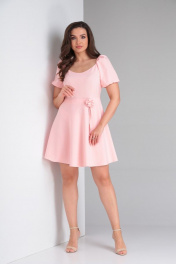 Коктейльное платье с юбкой-полусолнце и декором Tensi 352 жемчужный_розовый
