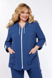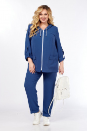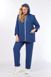 Комплект-двойка весенне-летнего сезона выполнен из стрейчевой ткани ярких, насыщенных оттенков. Свободный крой вместе с фактурой ткани обеспечивают комфорт. Модель достаточно универсальна, в ней Вы будете выглядеть стильно и уверенно. Жакет прямого силуэта с капюшоном и центральной застёжкой на молнию. На переде обработаны нагрудные вытачки, отлетные кокетки и накладные карманы. На спинке так же отлетная кокетка. Рукав втачной, длиной 7/8, по низу обработан манжетой, которая крепится патой. Брюки на притачном поясе, с резинкой и протянутым шнурком(из основной ткани). На передних половинках обработаны функциональные карманы. Низ брюк с цельнокроенными манжетами. Отделкой комплекта служат металлическая фурнитура, декоративный шнур, застёжка-молния (могут незначительно отличаться от представленных на фото). Длина жакета от центра горловины спинки до низа: 73 см. Длина рукава: 52 см. Длина брюк по боковому шву (без учёта пояса): 99 см.