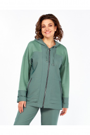 Комфортный комплект-двойка для повседневных дел и отдыха. Модель свободного кроя, комбинированная из двух видов ткани(текстиль «Монако» и хлопковый трикотаж трёхнитка). Натуральная фактура материалов делает образ не только стильным, но и удобным. Жакет-худи с центральной застёжкой на молнию, имеет спущенную линию плеча. На переде обработаны кокетки, планки, накладные карманы с отделочной тесьмой, по низу застрочены декоративные складки. Спинка с кокеткой и средним швом. Рукав спущенный, длинный, на манжете заложена декоративная складка. Горловина обработана притачным капюшоном с кулисой. Брюки прямые, на притачном поясе с резинкой и шнуром. На передних половинках обработаны функциональные карманы. Отделкой комплекта служит фурнитура (может отличаться от представленной на фото). Длина жакета от центра горловины спинки до низа: 71 см. Длина рукава: 61 см. Длина брюк по боковому шву (без учёта пояса): 101 см.