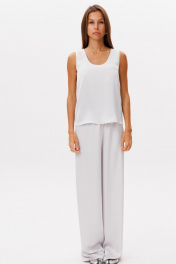 Прямые брюки из струящегося атласа с запахом THE NAME 2295 светло-серый