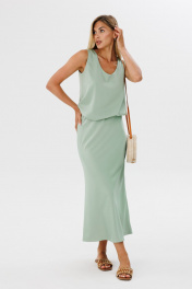 Атласная юбка на резинке по косой для повседневных образов THE NAME 2316 оливковый