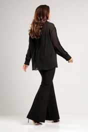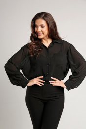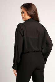 Блузка свободного кроя из креп-шифона с заниженной линией плеча идет в комплекте с топом из шелка Армани черного цвета на регулируемых бретелях. Рукав рубашечный, длинный с притачной манжетой. Застёжка центральная на петли и пуговицы в виде кристаллов. Низ блузки фигурной формы. Воротник стояче-отложной с отрезной стойкой. По переду нагрудные карманы. Блузка - база в гардеробе, сочетать можно с атласными брюками, джинсами , брюками ,юбками из кожи. Длина по спинке 74 см, длина рукава от линии шва 55см. В комплекте идет топ, котрый можно носить самостоятельно. Топ свободного кроя на регулируемых бретелях из шелка Армани.