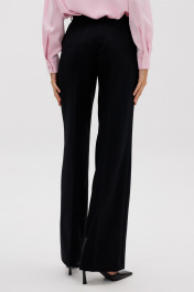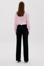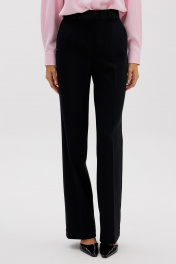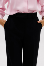 Стильные женские брюки прямого кроя. Пояс притачной, выполнен из плотной матовой, атласной ткани, брюк со шлевками. Застегиваются на молнию и потайной крючок. Карманы - боковые наклонные. Длина брюк по боковому шву с поясом 108 см. Ширина по талии – 35 см
