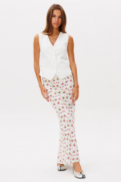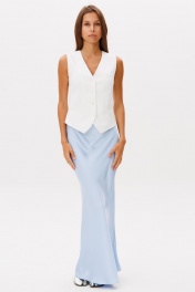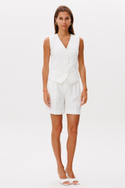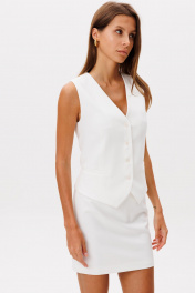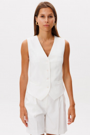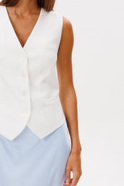Жилет приталенного силуэта с застежками по переду на петли-пуговицы. По переду талиевые выточки, карманы прорезные в рамку, вырез V-образный, спинка разрезная по центру с двумя талиевыми выточками. Жилет на подкладке.