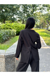 Жакет оверсайз в полоску, со шлицей сзади Рост модели 168 см. Длина 76 см, рукав 61 см