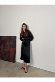 Платье в макси длине с отрезной линией талии с поясом. Рост модели 168 см. Длина-126 см, рукав-48 см, обхват груди-82 см, обхват талии-68 см, обхват бедер-100 см.