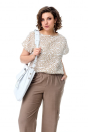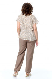 Блуза и брюки в стиле спорт-шик из легких натуральных тканей T&N 7510А леопард/какао