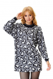 Аутентичное платье-свитер из трикотажа с длинным рукавом и круглым вырезом T&N 7575 «сердце»меланж_серый