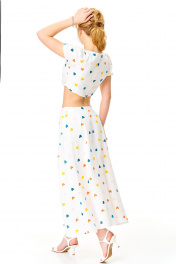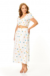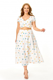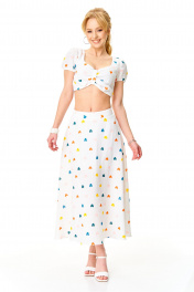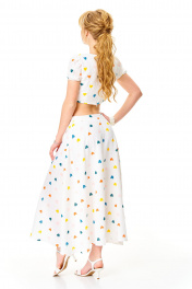 Образ на все 100% в любимых размерах из 100% хлопка! Невесомый легкий стильный комплект из воздушного муслина состоит из укороченной блузки и длинной юбки. Длина блузки отличается по размерам( 48-52 длиннее)! Блузка полуприлегающего силуэта с глубокой открытой горловиной. Рукав короткий. По спинке застежка на молнию. Блузка на подкладке из тонкого хлопка. Длина по спинке размер 42-46 33 см Длина по спинке размер 48-52 37 см Длина рукава 18 см Юбка расклешенная на поясе-кокетка. Талия слегка занижена. Застежка молния в боковом шве. Юбка на подкладке. Длина юбки 82 см Окружность по поясу размер 42 70 см размер 44 74 см размер 46 78 см размер 48 80 см размер 50 84 см размер 52 88 см Состав хлопок 100% ВНИМАНИЕ! После стирки ткань муслин дает усадку по длине от 2 до 4 см