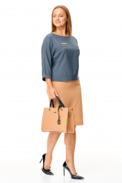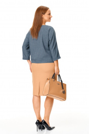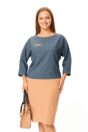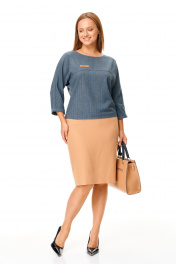 Современный деловой комплект в актуальном цветовом сочетании состоит из однотонной юбки и свободной блузы. Свободная блуза из ткани в полоску в тон юбки. Крой «мышь». Рукав 3/4. По низу рукава манжет. Длина 53 см размер 46-50 Длина 58 см размер 52-56 Длина рукава от горловины 55 см. Обхват по груди размер 46-104 см 48-108 см 50-112 см 52-116 см Юбка зауженная к низу со шлицей по спинке. Застежка «потайная молния» по среднему шву спинки. Юбка на подкладке. Длина размер 46,48 - 57 см Длина размер 50,52 - 60 см Объем по поясу размер 46-76-80 см 48-80-84 см 50-84-88 см 52-88-92 см Объем по бедрам размер 46-102 см 48-106 см 50-110 см 52-114 см