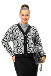 Стильный трикотажный комплект: укороченный кардиган и юбка-midi в современном сочетании дизайн «сердце» и черного. Кардиган из уютного мягкого трикотажа, свободного силуэта, застегивается на пуговицы. Планка горловины и манжеты из трикотажа «рубчик». Плечо спущено. Рукав длинный. Длина размер 44-48-55 см Длина размер 50-54-60 см Длина рукава с плечом 73 см ( длина плеча 27 см). Юбка из утепленного плотного трикотажа «в рубчик» без застежки, пояс на резинке. Длина юбки 73 см (без пояса) Окружность по талии размер 46-68-78 см 48-74-84 см 50-78-88 см 52-82-92 см 54-86-96 см