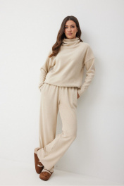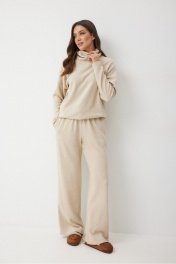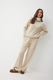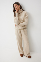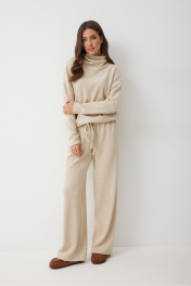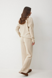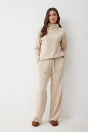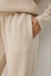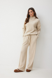 Женские брюки в актуальном спортивном стиле. Модель выполнена из мягкого трикотажного полотна с рубчиком, что добавляет фактурности и мягкости. Свободный силуэт гарантирует максимальный комфорт и непринужденный вид. Пояс на резинке обеспечивает идеальную посадку, а дополнительный шнурок из основной ткани позволяет точно отрегулировать объем. Для удобства в боковых швах сделаны функциональные карманы. Эти брюки — идеальное сочетание уюта и актуального спорт-шика. Брюки составят стильный образ с джемпером М158/1. Промеры в 44 размере: длина по боковому шву - 107 см длина по шаговому шву - 81 см ПОТ - 37 см ПОТ с растянутой резинкой - 55 см ПОБ - 58 см