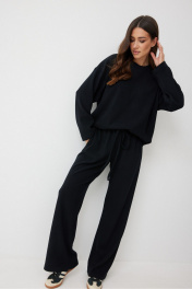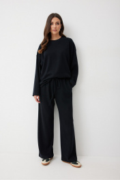 Женские брюки в актуальном спортивном стиле. Модель выполнена из мягкого трикотажного полотна с рубчиком, что добавляет фактурности и мягкости. Свободный силуэт гарантирует максимальный комфорт и непринужденный вид. Пояс на резинке обеспечивает идеальную посадку, а дополнительный шнурок из основной ткани позволяет точно отрегулировать объем. Для удобства в боковых швах сделаны функциональные карманы. Эти брюки — идеальное сочетание уюта и актуального спорт-шика. Брюки составят стильный образ с джемпером М161 или М162. Промеры в 44 размере: длина по боковому шву - 107 см длина по шаговому шву - 81 см ПОТ - 37 см ПОТ с растянутой резинкой - 55 см ПОБ - 58 см