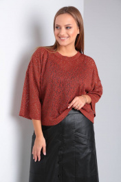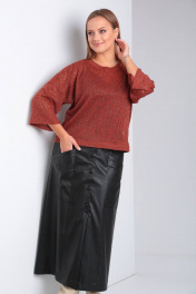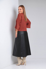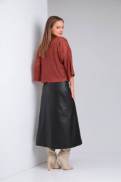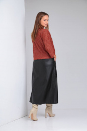 Джемпер и юбка из трикотажа с экокожей и поясом TVIN 7663 терракот