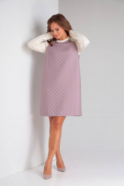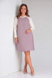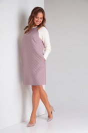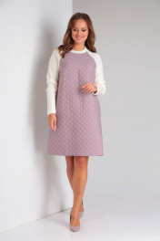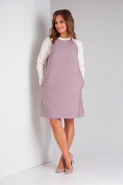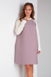 Демисезонное фиолетовое платье А-силуэта из стежки и трикотажа TVIN 7707 лиловый