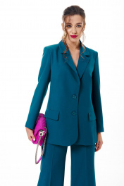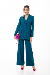 Костюм оттенка морской волны станет находкой для любительниц делового стиля в одежде. Удлиненный пиджак и широкие брюки помогут скрыть недостатки в области талии и бедер, визуально сделают фигуру стройнее и придадут образу элегантность.