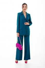 Демисезонные брюки и жакет из текстиля в деловом стиле Твой имидж 1727 морская_волна