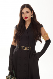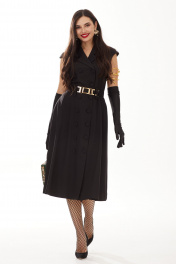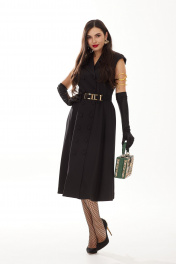 Черное платье – проверенный выбор для выхода в свет и не только… Платье идеально подходит как для офиса, так и на праздничное мероприятие. Платье впечатляет своей неподвластной времени элегантностью и хорошо смотрится с различными аксессуарами. Элегантное платье А-силуэта длиной "мидакси" станет незаменимым нарядом в вашем гардеробе. Платье жакетного типа на 2-х бортной застёжке на петли и пуговицы, со слегка спущенной линией плеча. Платье без рукавов, отрезное по линии талии. Свободный крой нижней части поможет скрыть недостатки фигуры в области бедер и подчеркнуть талию. В боковых швах расположены карманы. !!! В комплект входит съёмный пояс из основной ткани — для создания повседневного образа и съёмный декоративный ремень с золотой фурнитурой, который привлечет внимание, если вы планируете создать вечерний LOOK. Вам нравятся женственные, шикарные и вневременные платья ? Это именно то, что мы создаем.