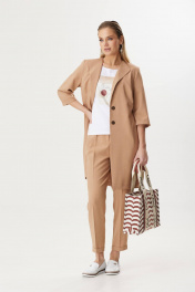Деловой костюм из текстиля: жакет, брюки и блуза Твой имидж 1783 бежевый