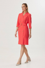 Демисезонное платье с складками и яркими элементами Твой имидж 1800 коралл