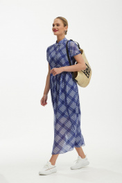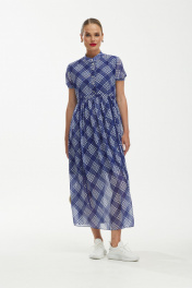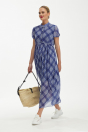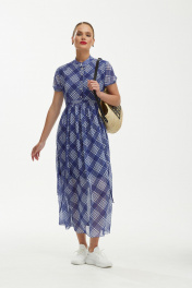 Платье шифоновое с воздушным силуэтом и бело-синим принтом Твой имидж 1891 синий