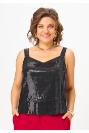 Топ прямого силуэта на широких бретелях, выполнен из трикотажного полотна с мелкими пайетками. Перед с нагрудными вытачками. Горловина переда лёгкой V-образной формы. Спинка цельнокроеная. Хотите выглядеть ярко и стильно на корпоративе или новогодней вечеринке? Тогда этот стильный топ идеально подойдет вам! Блестящие пайетки делают его по-настоящему эффектным и привлекательным.