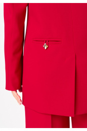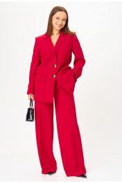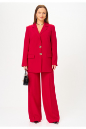 Костюм женский 2-х предметный, состоящий из жакета и брюк. Жакет полуприлегающего силуэта, на подкладке, с одноботной застежкой на петли и пуговицы. Горловина жакета оформлена воротником пиджачного типа. В области бедер обработаны прорезные карманы ""в рамку"" с клапаном. Спинка жакета со средним швом, заканчивающийся шлицей, левая часть спинки с прорезным карманом в рамку, вход в который фиксирует навесная петля с пуговицей. Брюки формы ""палаццо"" со стрелками. Верхний срез обработан притачным поясом с резинкой в области спинки. По центру переда - застёжка на крючок и тесьму-молнию. В боковых швах расположены наклонные карманы. Женский брючный костюм — идеальный выбор для современной женщины, которая ценит стиль и комфорт. Он сочетает в себе элегантность и практичность, что делает его универсальным решением для разных ситуаций: от деловых встреч до вечерних мероприятий.