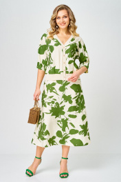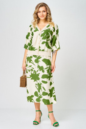 Блуза, юбка Твой имидж 2386 молочный_зеленый_принт