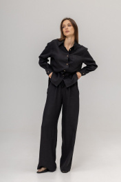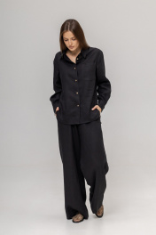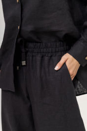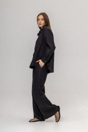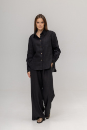 Костюм из 100% умягченного льна( рубашка + брюки палаццо)Рубашка прямого свободного кроя с закругленным низом, с широкими манжетами, классическим воротником-стойкой, застежкой на пуговицы из натурального кокоса. Размер S: Длина изделия по спинке 74 см ( передняя планка 66 см),Полуобхват в области груди 55 см,Длина рукава от воротника 73 см, Длина плеча 17 см. Размер М :Длина изделия по спинке 75см ( передняя планка 68 см), Полуобхват в области груди 58 см, Длина рукава от воротника 74 см, Длина плеча 18 см. Размер L : Длина изделия по спинке 79 см ( передняя планка 71 см), Полуобхват в области груди 63 см, Длина рукава от воротника 75 см, Длина плеча 18 см. Брюки палаццо с боковыми карманами , пояс на резинке с дополнительным шнурком с металлическими наконечниками. Длина внутреннего бокового шва 80 см.Костюм изготовлен из дважды умягченного льна с эффектом мятости. Изделия, сшитые из такого льна, практически не дают усадку после стирки, не теряют цвет и могут даже не гладиться после стирки, а сушиться на плечиках и сразу можно носить.Не мнется заломами, не теряет форму, не требует сложного ухода, просто надеваешь и выглядишь идеально. Деликатная стирка при температуре не выше 30 градусов с жидким моющим средством.