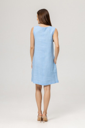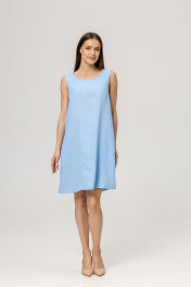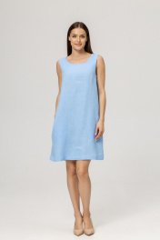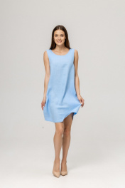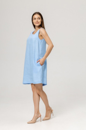 Платье-трапеция из умягченного льна с эфффектом мятости , круглая горловина, в боковых швах расположены боковые карманы. Длина изделия 90 см. Минимальный уход-максимальный комфорт.