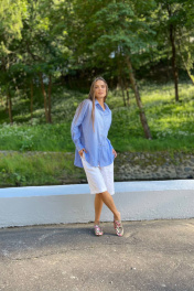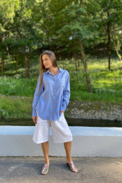 Рубашка из умягченного льна прямого, свободного кроя с закругленным низом. С широкими манжетами, классическим воротником-стойкой. Застежкой на пуговицы. Пуговицы натуральные кокосовые. По спинке складки навстречу друг другу, это позволет рубашке не натягиваться на бедрах. а спокойно ниспадать вниз. Все внутренние швы закрытые, поэтому, даже после многочисленных стирок швы рубашки остаются безупречными, никаких торчащих ниток. Умягченный лен отличается от обычного льна тем, что мнется не заломами, а естественной мятостью, которую можно даже не гдадить, при желании. Широкий манжет может быть застегнут, либо подвернут и, благодаря, закрытым швам смотрится аккуратно. . Абсолютно универсальный комплект для любого гардероба и стиля. Уход за изделием: деликатная стирка с жидким моющим средством при температуре 30-40 градусов. S : ширина 55 см, длина передней планки 66 см, длина спинки от плеча 72 см, длина рукава от горловины 72 см. М: ширина 60 см, длина передней планки 67 см, длина спинки от плеча 73 см, длина рукава от горловины 74 см. L: ширина 65 см, длина передней планки 70 см, длина спинки от плеча 75 см, длина рукава от горловины76 см.