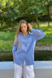Голубая льняная рубашка с закругленным низом Twok 200803 темно-голубая